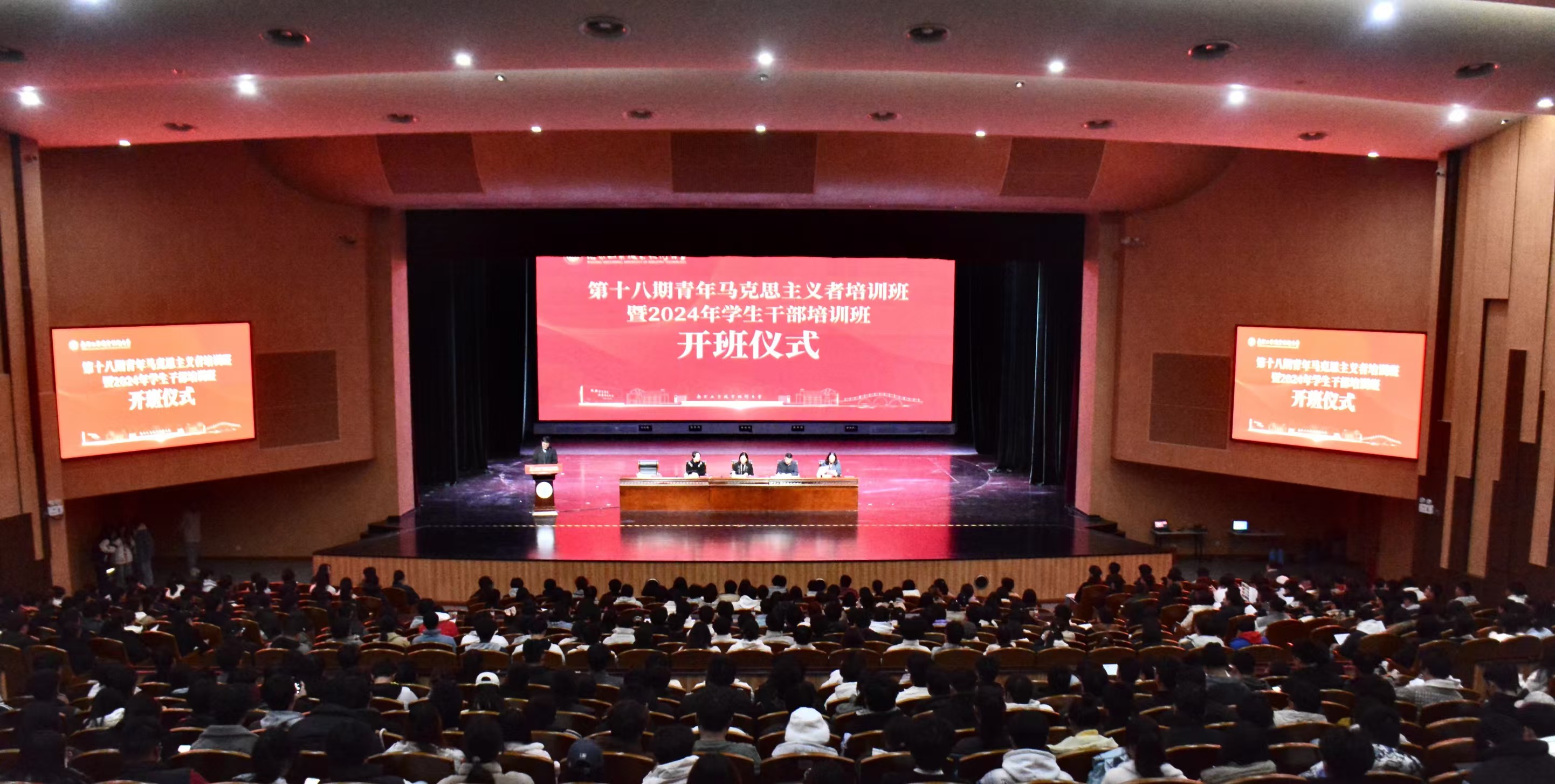 12月11日下午,pp电子官网第十八期青年马克思主义者培训班暨2024年学生干部培训班开班仪式在大学生创新发展中心炎培会堂隆重举行。学校党委常委、副校长魏萍,党委常委、党委组织部部长高宏彦,党委常委、党委宣传部部长刘畅,党委学生工作部(处)、团委等部门全体同志,青年讲师团师生代表,辅导员代表以及600余名学生干部参加开班仪式。