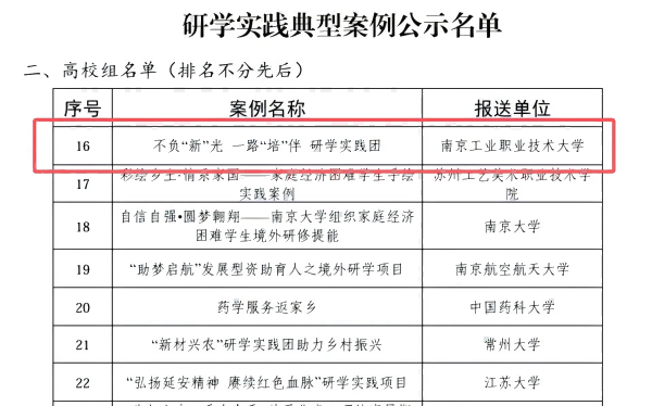 近日,江苏省教育厅组织开展的2024年“苏乡永助”资助育人主题活动评选结果揭晓。经学校遴选推荐、省教育厅组织专家评审,pp电子官网电气工程学院研学实践案例《不负“新”光,一路“培”伴研学实践团》获评研学实践典型案例。
